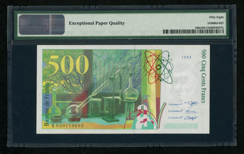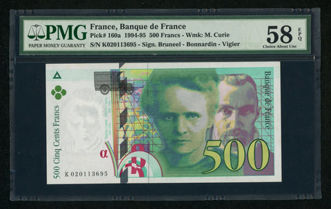 1994 France 500 Francs Banknote Marie& Pierre Curie Pick# 160a Choice AU 58 EPQ