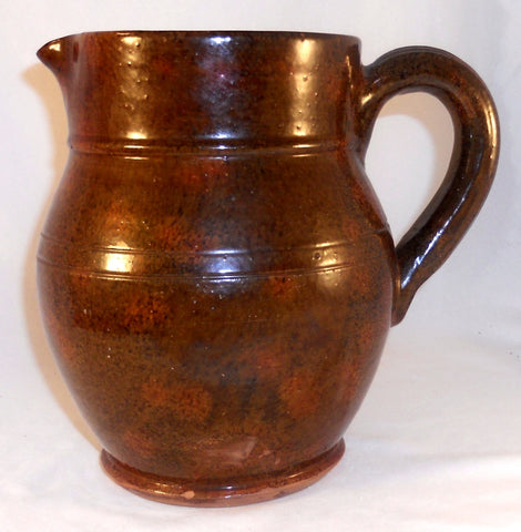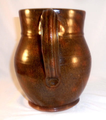 1939 Redware Glazed Large Pitcher Thomas Stahl Light Mottled Dark Greenish Brown