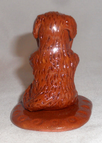 2007 Breininger Redware Miniature Figurine Dog Sitting on Behind Basket in Mouth
