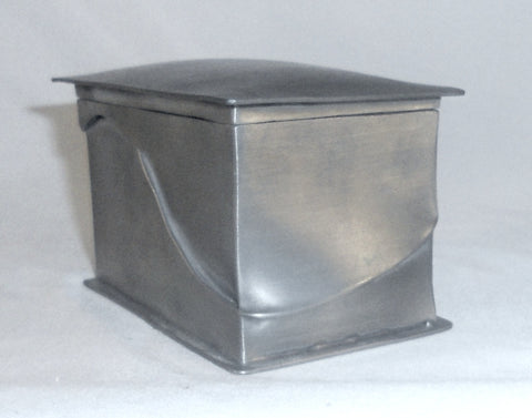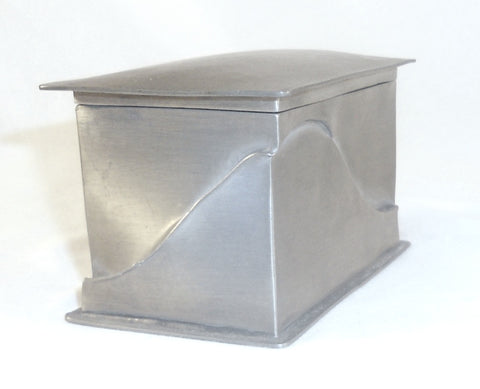 Arts & Crafts Rectangular Pewter Trinket Box Overlapping Curved Sides Lift Lid