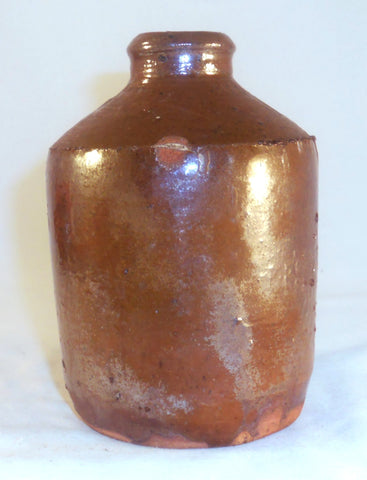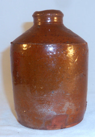 Old Manganese Glazed Redware Squat Small Bottle/Flask Round Base South East PA